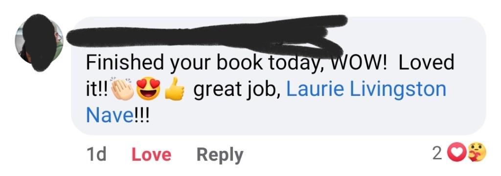 I am loving the “author life.” I love the motivation it has provided to write even more. I love that the dream from childhood has come true. I love hearing from friends that they enjoyed reading. Mostly I love being creative, waking up with an idea in the middle of the night, and the images that swirl around in my mind all day long. I think I’ll keep on doing it for at least another 30 or 40 years. 🙂
